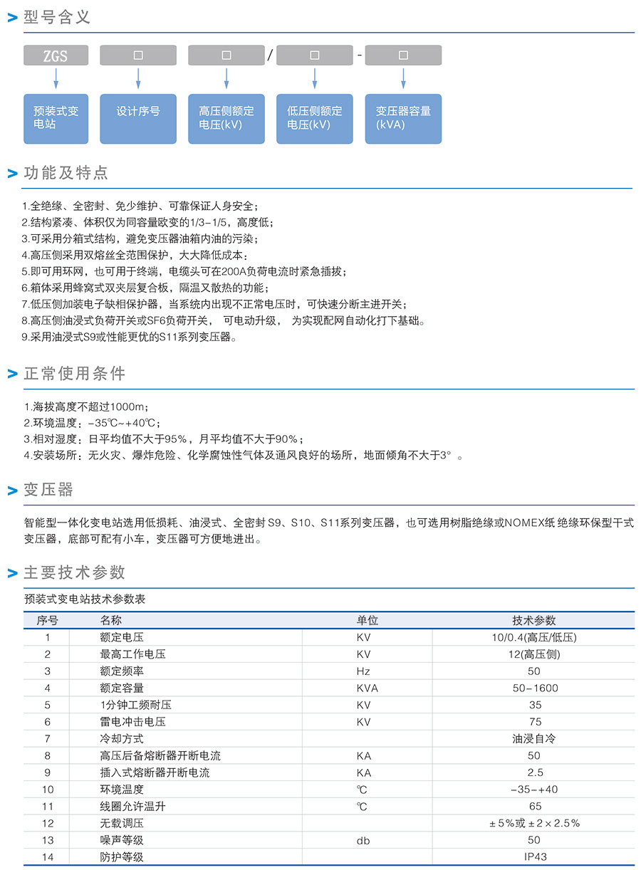 產(chǎn)品名稱:ZGS11-1250/10組合式變電站