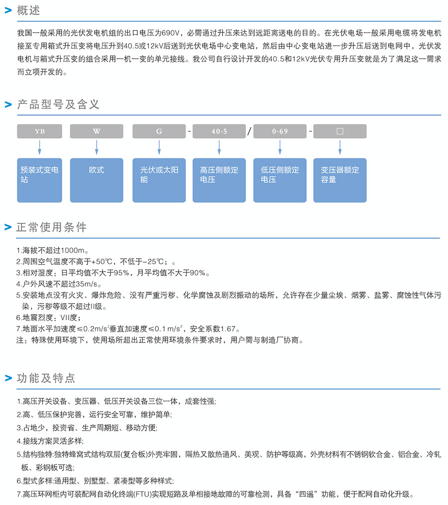 產(chǎn)品名稱:YBWG-40.5/0.69光伏箱變
