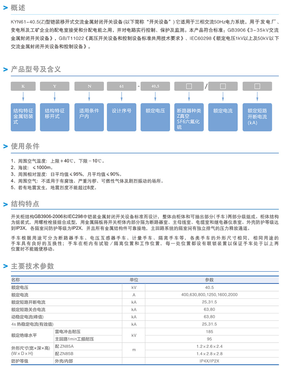 產(chǎn)品名稱:KYN61-40.5(Z)型鎧裝移開式交流金屬封閉開關(guān)設(shè)備