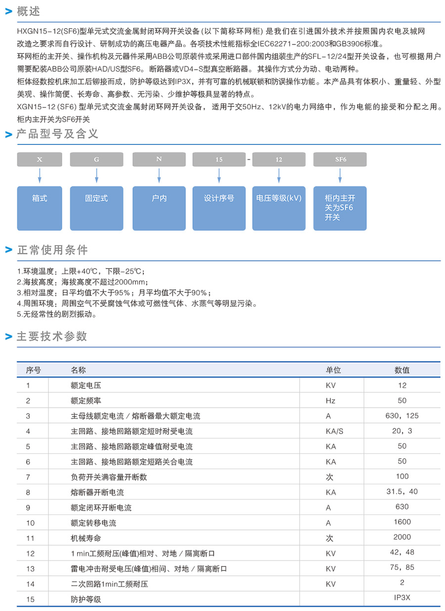產品名稱:HXGN15-12箱式固定交流金屬封閉開關設備
